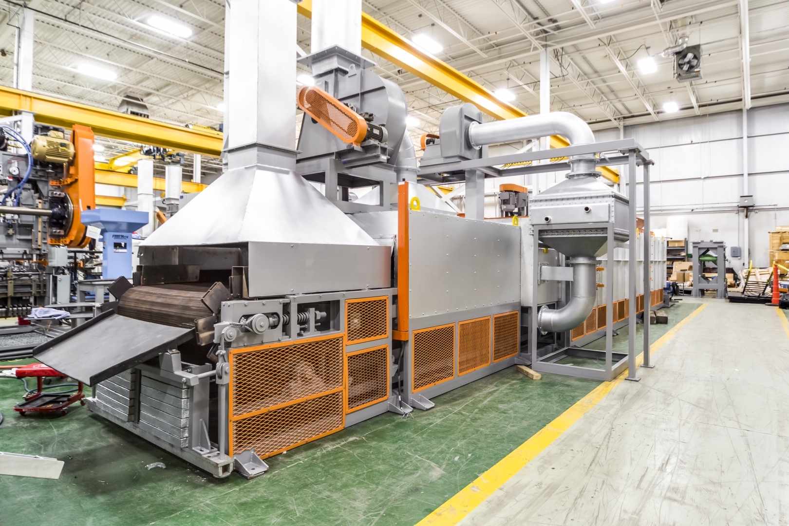 The Waterbury Farrel Annealing Furnaces are used to anneal brass parts after forming. The annealing furnace is an electrical resistance heating furnace either with a continuous metal mesh conveyor belt or a fabricated long drum with an internal screw type auger, with automatic temperature control system. Parts are deposited directly onto the conveyor or at the opening chute of the drum, where they travel into the multi-zone electric furnace with an option of a nitrogen atmosphere at a specific speed. It also has a cooling zone at the end to cool the parts to a reasonable handling temperature before offloading.